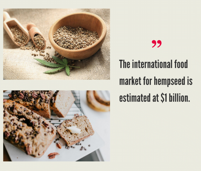 The global seed market is expected to grow at a CAGR of 4.95% due to increased demand from applied industries between 2020-2027, from $388.46 million in the year 2020 to $544.93 million by 2027. The international food market for hempseed is estimated at $1 billion. It costs around $2,000 a hectare for farmers to grow it, and they are paid around $3 a kilogram.