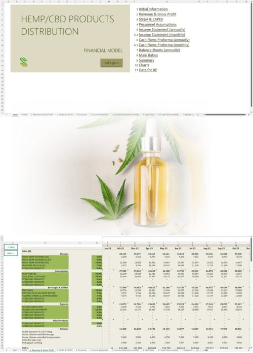 The Hemp CBD Products Distribution Financial Model is a fully-functioning Excel financial model for a hemp/CBD distribution business to: